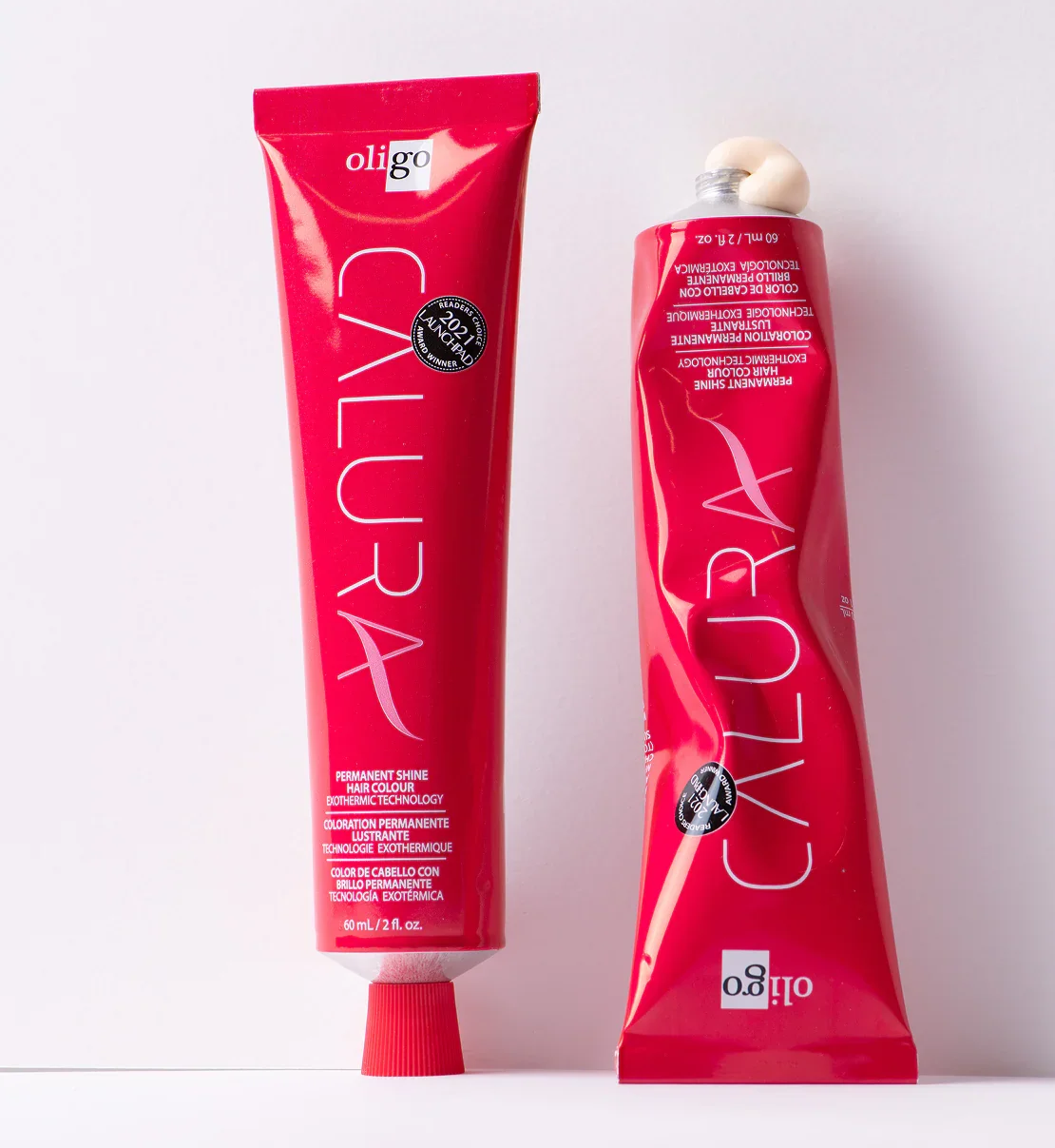 Discover the revolutionary permanent shine exothermic hair colour by Oligo Professionnel. Its unique formula featuring the exclusive exothermic technology offers unparalleled, radiant shine. The Calura exothermic system is an innovative technology that was designed to maximize dye penetration and minimize hair damage. Each shade was formulated to generate a specific increase in temperature opening the cuticle gently to achieve desired results.